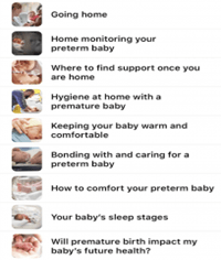 Topics range from information about preterm birth, special nutritional needs of preterm babies, the rights of parents or how to bond with a baby in the NICU to name but a few.