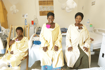 UNICEF/UN0321627/Kanobana Jemimah, right, sits with two other mothers in the Kangaroo Care room. Gahini Hospital did not always have the best care, but with more medical equipment and better trained doctors through the clinical mentorship programme, mothers like Jemimah feel safer and happier giving birth here.