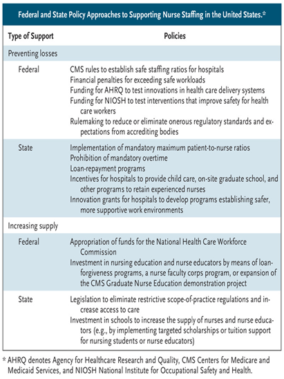 Federal and State Policy Approaches to Supporting Nurse Staffing in the United States.