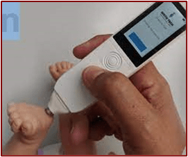 The Preemie-Test is the first medical device capable of accurately assessing gestational age within +/- 4 days immediately after an infant is born. The hand-held device features a probe containing light emitters and receivers that is applied against the newborn’s foot and, using mathematical algorithms, can estimate dating in a matter of seconds. This noninvasive optoelectronic device measures the thickness of the skin through backscattering of light using a light-emitting diode, and the battery lasts up to three years allowing hundreds to thousands of measurements. Support is available through a mobile app.