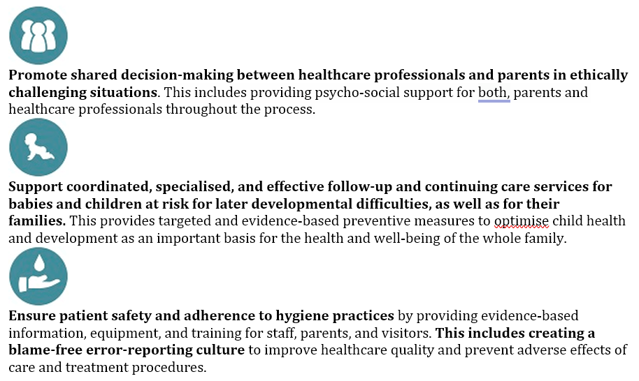 On a political level, addressing European Standards of Care for Newborn Health will stimulate a new debate that can help questioning existing structures, identify gaps and deficiencies, and advance national healthcare systems. To read the standards and to learn more about their development, please visit our project website European Standards of Care for Newborn Health.