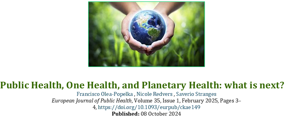 The complete interdependence between human, animal, and ecosystem health has been long recognized within Indigenous communities; however, the emergence and rapid expansion of the fields and practice of both One Health (OH) and Planetary Health (PLH) are recent developments in the right direction [1]. While the OH approach has been advocated for mostly in the context of addressing global threats related to zoonotic diseases and antimicrobial resistance, this approach is also relevant for several major public health challenges including pollution management, the environmental/agricultural component of food safety, food security, and nutrition. For example, the OH approach may lead to ecologically sustainable dietary patterns impacting the prevention and management of chronic conditions, such as cardiovascular disease.