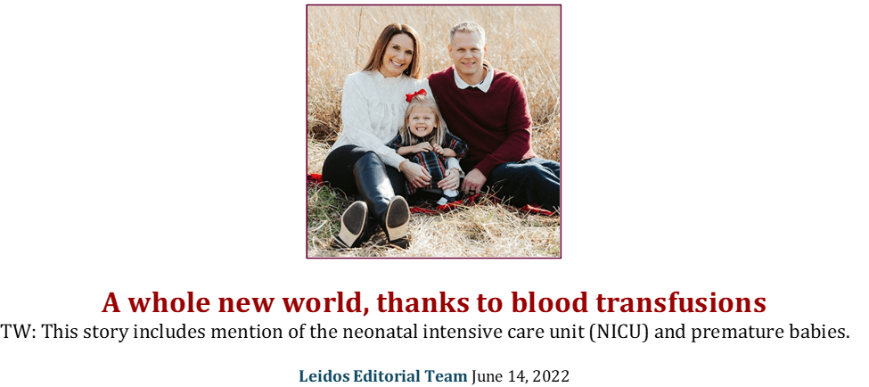 In the United States, someone is in need of blood or platelets every two seconds. For many months, Hailey was one of those people. She received blood or platelet transfusions almost daily in the first weeks of her life, decreasing over time as she grew stronger each day. “Throughout the NICU experience of being in day-to-day survival mode, the gift of blood was a vital stability for Hailey,” said Allison.