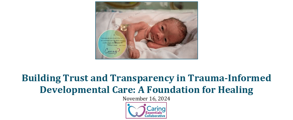 At Caring Essentials, we believe that trust and transparency are essential pillars of trauma-informed care, supporting every interaction, every decision, and every relationship within the NICU. By honoring these principles, we are building a future where families and clinicians alike can find strength, healing, and hope—together. With unwavering commitment to fostering trust, Mary Coughlin.