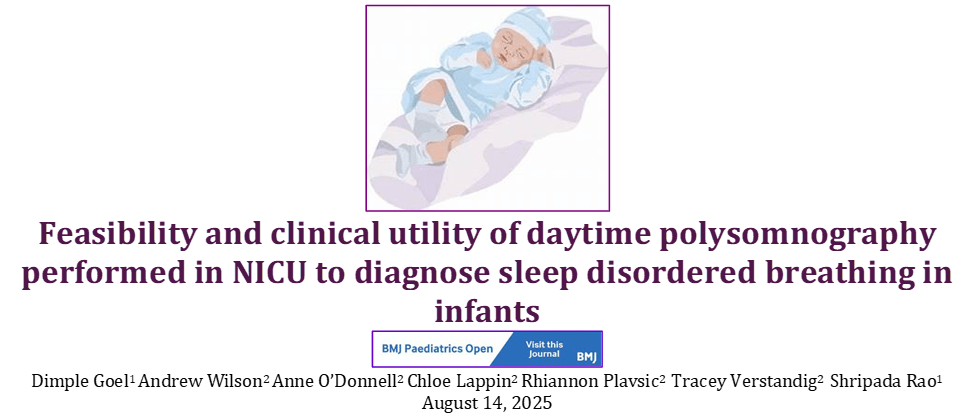 Conclusion Daytime PSGs performed in NICU were feasible and provided clinically useful results in infants ❤ months of age. Availability of daytime PSGs performed at the infant’s bedside expands resource capacity and has the potential for cost savings.