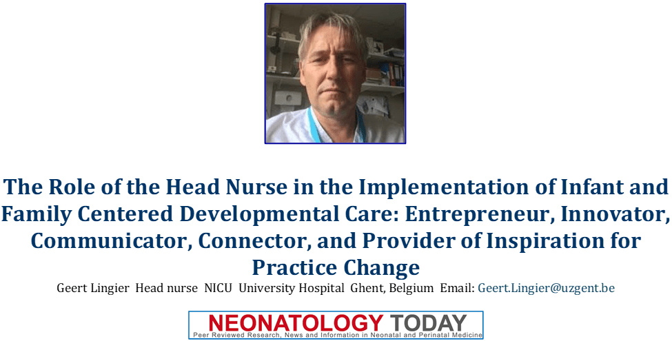 Leadership by the head nurse/unit manager in facilitating the implementation of Infant and Family Centered Care (IFCDC) is often unrecognized. The key role of the head nurse/unit manager in promoting IFCDC and creating a NIDCAP Training Center within the neonatal intensive care unit at the University Hospital of Ghent, Belgium, serves as an example of significant practice change. Instead of taking a theoretical model of change as a starting point, concrete personal experiences and roles that are incorporated into daily practice are described. The aim is to provide insight into how leadership, entrepreneurship, and connection significantly contribute to successful implementation, and to inspire managers facing similar processes.