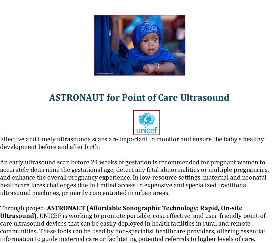 Source: https://www.unicef.org/innovation/newborn-health-innovations#:~:text=UNICEF%20is%20working%20to%20improve%20access%20to,management%20*%20**ASTRONAUT**%20Point%20of%20care%20ultrasound